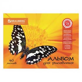 Альбом для рисования, А4, 40 листов, скоба, обложка картон, BRAUBERG, 200х283 мм, "Цветы" (2 вида), 102851