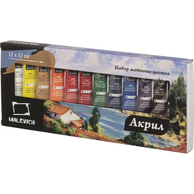 Краски акриловые матовые Малевичъ, 12 цветов по 12 мл, 612006