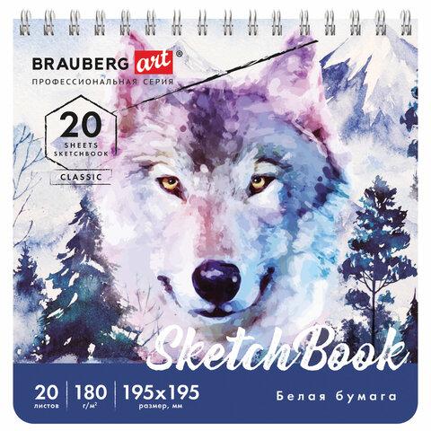 Скетчбук, белая бумага 180 г / м2, 195х195 мм, 20 л., гребень, твердая обложка, BRAUBERG ART CLASSIC, 112994