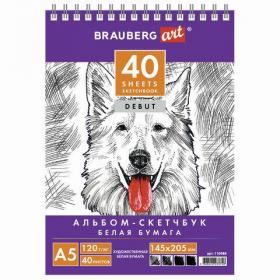 Скетчбук, белая бумага 120 г / м2, 145х205 мм, 40 л., гребень, жёсткая подложка, BRAUBERG ART DEBUT, 110988