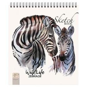 Скетчбук, белая бумага 120 г / м2, 170х195 мм, 40 л., гребень, фольга, выборочный твин лак, "Зебра", 99518
