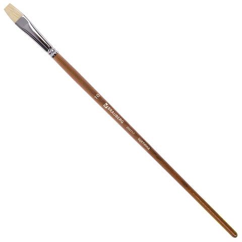 Кисть художественная профессиональная BRAUBERG ART CLASSIC, щетина, плоская, № 10, длинная ручка, 200717