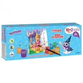 Гуашь ЮНЛАНДИЯ "ЮНЫЙ ВОЛШЕБНИК" 10+2 цвета (золотистый+серебристый) по 20 мл, 191517
