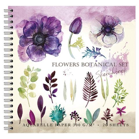 Скетчбук, акварельная белая бумага 300 г / м2, 200х200 мм, 20 л., гребень, SoftTouch, брайль, "Nature", 97286