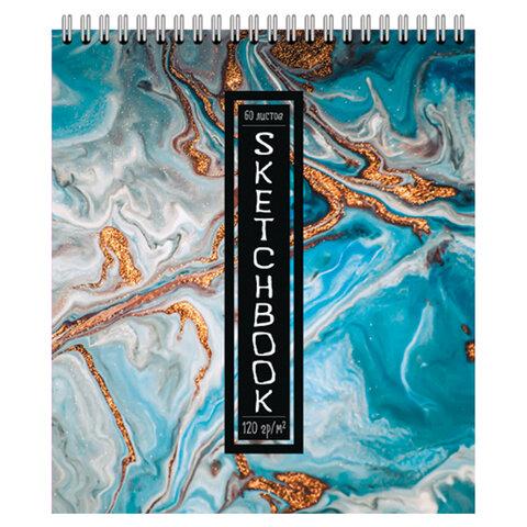 Скетчбук, белая бумага 120 г / м2, 170х195 мм, 60 л., гребень, фольга, выборочный твин лак, "Мрамор", 99464