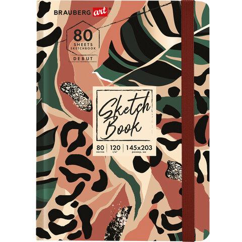 Скетчбук, белая бумага 120 г / м2, 145х203 мм, 80 л., резинка, твердый, BRAUBERG ART DEBUT "Листья", 114587