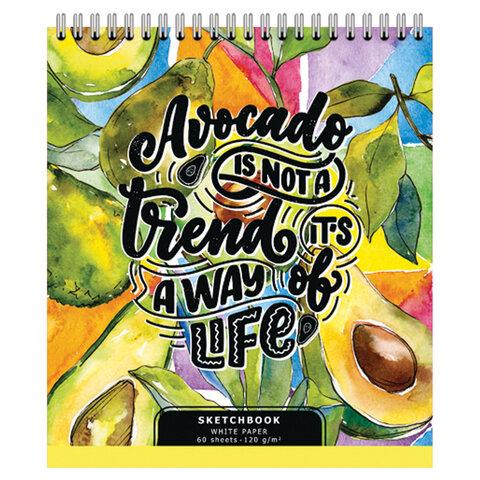 Скетчбук, белая бумага 120 г / м2, 170х195 мм, 60 л., гребень, SoftTouch, выборочный лак, "Авокадо", 97750