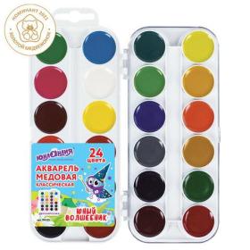 Краски акварельные ЮНЛАНДИЯ "ЮНЫЙ ВОЛШЕБНИК", медовые, 24 цвета, КЛАССИЧЕСКИЕ, пластик, 191325