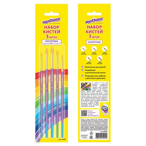 Кисти ЮНЛАНДИЯ, набор 5 шт. (СИНТЕТИКА: круглые № 1, 2, 3, 4, 5), блистер с европодвесом, 200895