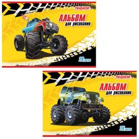 Альбом для рисования, А4, 20 листов, обложка картон, HATBER, 205х290 мм, "Внедорожники", 20А4В, A28162