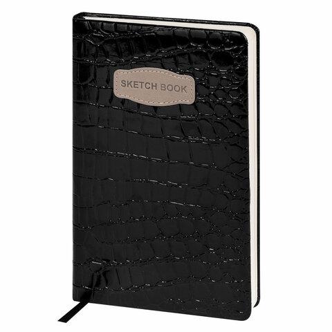 Скетчбук, слоновая кость 140 г / м2, 130х210 мм, 80 л., КОЖЗАМ, резинка, BRAUBERG ART CLASSIC, CROCO, черный, 116470