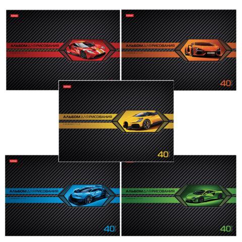 Альбом для рисования А4 40 л., скоба, выборочный лак, HATBER, 205х290 мм, "AutoCarbon", 085129, 40А4вмВ