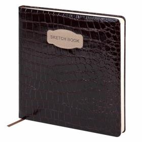 Скетчбук, слоновая кость 140 г / м2, 200х200 мм, 80 л., КОЖЗАМ, резинка, BRAUBERG ART CLASSIC, CROCO, коричневый, 116473