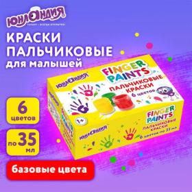 Краски пальчиковые для малышей от 1 года, классические цвета, 6 по 35 мл, ЮНЛАНДИЯ, 192567
