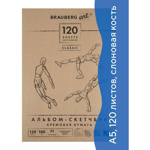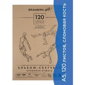 Скетчбук, слоновая кость 100 г / м2, 148х210 мм, 120 л., прошивка, BRAUBERG ART CLASSIC, 128961