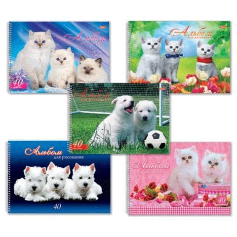 Альбом для рисования, А4, 40 листов, спираль, обложка картон, HATBER, 205х300 мм, "Любимцы" (5 видов), 004142, 40А4Всп