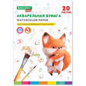 Бумага для акварели БОЛЬШАЯ А3 в папке, 20 л., 200 г / м2, индивидуальная упаковка, BRAUBERG KIDS, "Лисичка", 115155