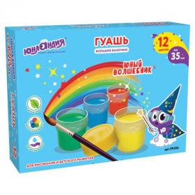 Гуашь ЮНЛАНДИЯ "ЮНЫЙ ВОЛШЕБНИК", 12 цветов по 35 мл, БОЛЬШИЕ БАНОЧКИ, высшее качество, 191336