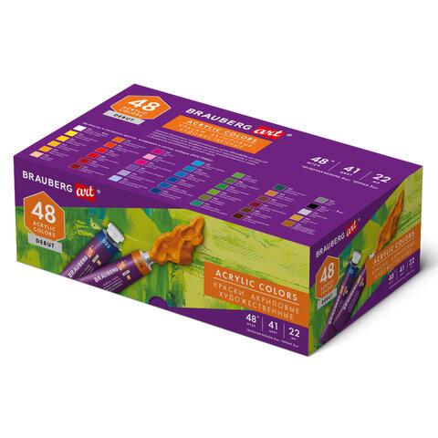 Краски акриловые художественные, НАБОР 48 штук, 41 цвет по 22 мл, в тубах, BRAUBERG ART DEBUT, 192302