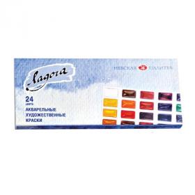 Краски акварельные художественные "Ладога", 24 цвета, кювета 2,5 мл, картонная коробка, Невская Палитра, 20411912