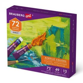 Краски акриловые художественные, НАБОР 72 штуки, 49 цветов по 12 мл в тубах, BRAUBERG ART DEBUT, 192296