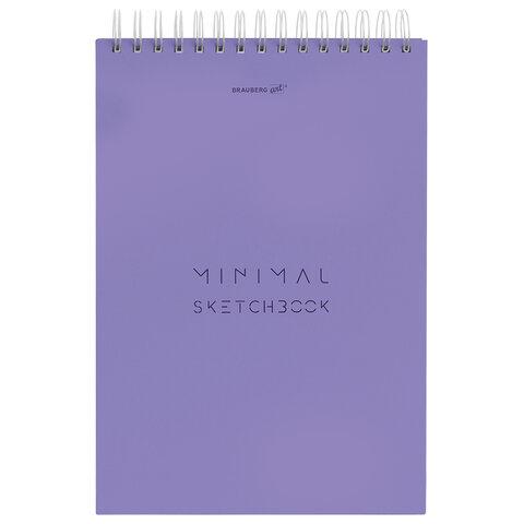 Скетчбук, белая бумага 100 г / м2, 140х201 мм, 60 л., гребень, жёсткая подложка, BRAUBERG ART, Minimal сиреневый, 116901