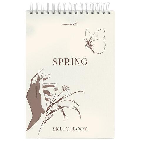 Скетчбук, белая бумага 100 г / м2, 140х201 мм, 60 л., гребень, жёсткая подложка, BRAUBERG ART, Ассорти Beige, 116904