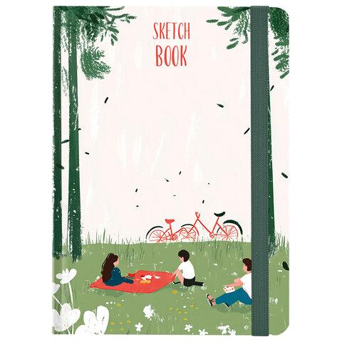 Скетчбук, белая бумага 120 г / м2, 145х203 мм, 80 л., резинка, твердый, BRAUBERG ART, "Прогулка", 116896