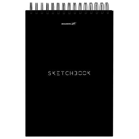 Скетчбук, белая бумага 100 г / м2, 140х201 мм, 60 л., гребень, жёсткая подложка, BRAUBERG ART, Minimal черный, 116900