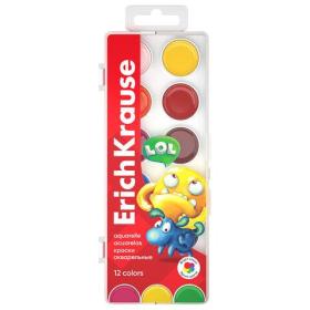 Краски акварельные ERICH KRAUSE "Jolly Friends", 12 цветов, пластиковый пенал, европодвес, 61366