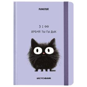 Скетчбук, белая бумага 120 г / м2, 145х203 мм, 80 л., резинка, твердый, FUNSTER (ФАНСТЕР), "Кот Тыгыдык", 116897