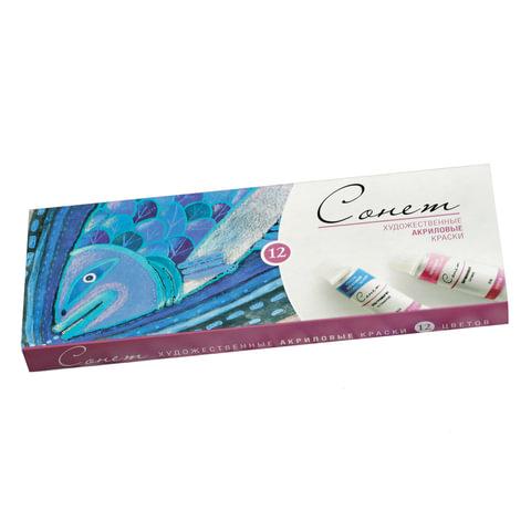 Краски акриловые художественные "Сонет", НАБОР 12 цветов по 10 мл, в тубах, Невская Палитра, 2841095