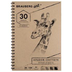 Скетчбук, белая бумага 150 г / м2, 210х297 мм, 30 л., гребень, BRAUBERG ART CLASSIC, 128949
