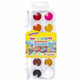Краски акварельные ПИФАГОР СОЛНЫШКО 12 цветов, круглые кюветы, на коррексе, 192636