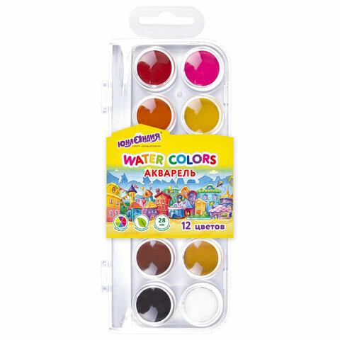 Краски акварельные ЮНЛАНДИЯ "ДОМИКИ" 12 цветов, круглые кюветы 28 мм, пенал, 192630
