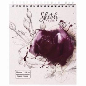 Скетчбук, серая бумага 120 г / м2, 170х195 мм, 30 л., гребень, подложка, цветная фольга, "Роза", 98702