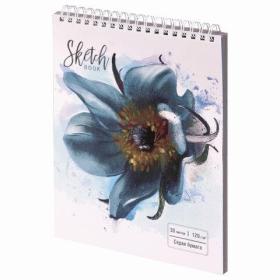 Скетчбук, серая бумага 120 г / м2, 170х195 мм, 30 л., гребень, подложка, цветная фольга, "Цветок", 98696