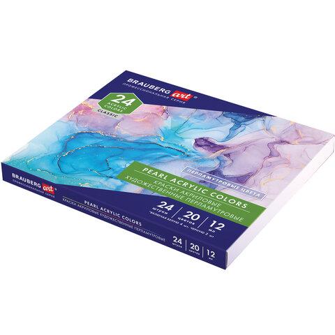 Краски акриловые художественные ПЕРЛАМУТРОВЫЕ, НАБОР 24 шт., 20 цветов в тубах 12 мл, BRAUBERG ART, 192244
