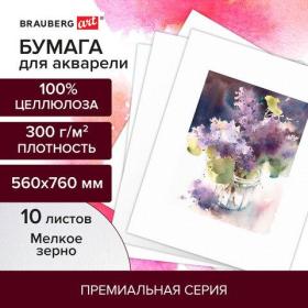 Бумага для акварели 300 г / м2 560x760 мм мелкое зерно, 10 листов, BRAUBERG ART PREMIERE, 113237