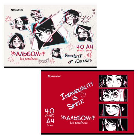 Альбом для рисования А4 40 л., скоба, обложка картон, BRAUBERG, 203х288 мм, "Аниме" (2 вида), 106703