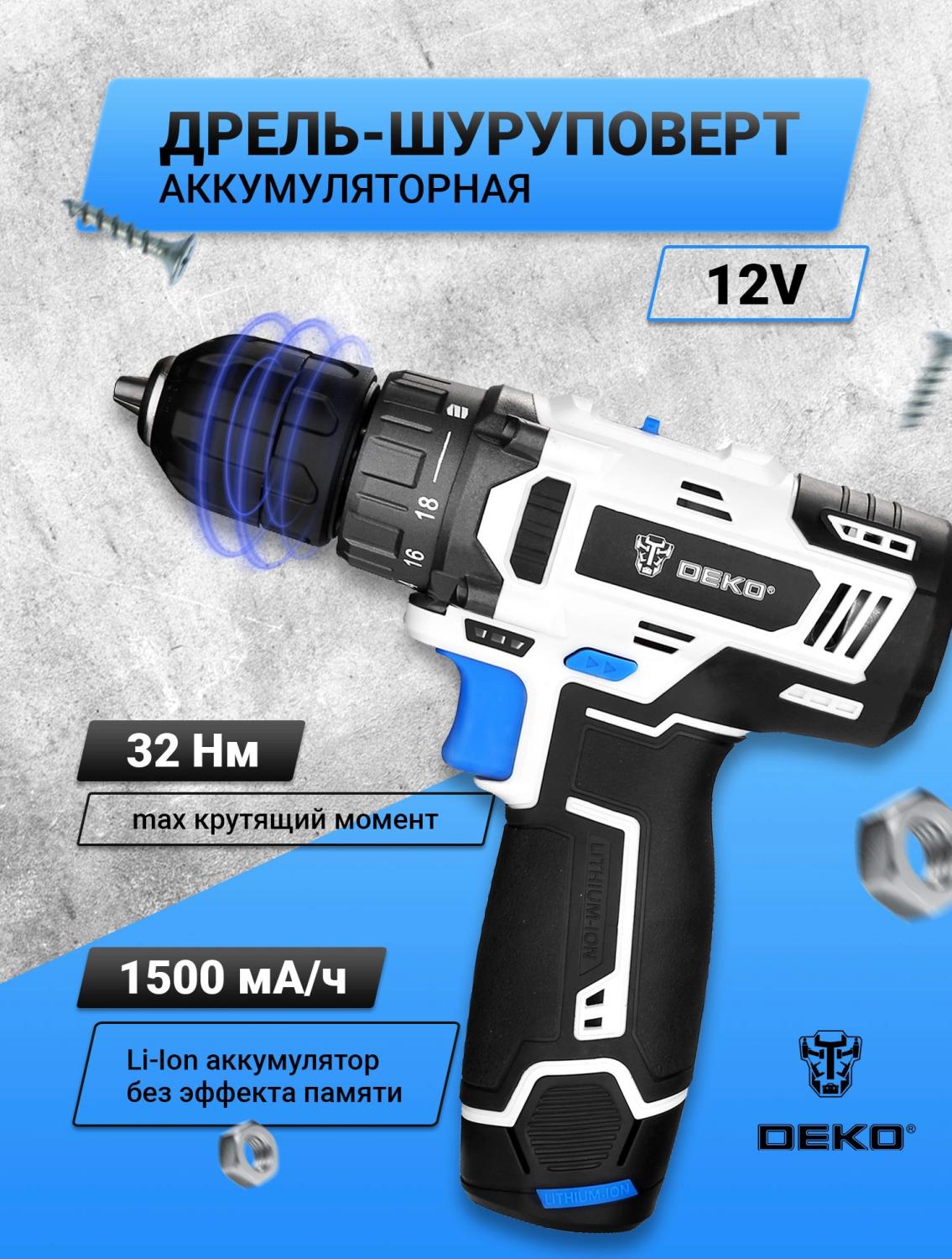 Дрель-шуруповерт Deko GCD12DU3 SNOW WHITE SET1 аккум. патрон:быстрозажимной (063-4170)