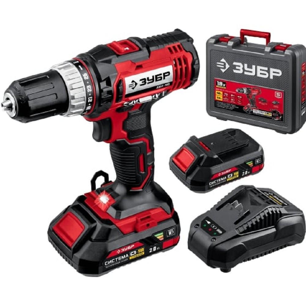 ЗУБР дрель-шуруповерт, С1-18, 18 В, 40 Н·м, 2 АКБ (2 А·ч), кейс [ДШЛ-185-22]