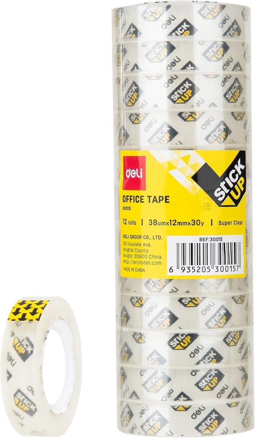 Клейкая лента канцелярская Deli E30015 супер прозрачная шир.12мм дл.27м спайка (упак.:12шт)