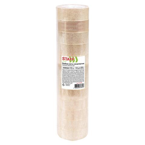 Клейкие ленты 12 мм х 33 м канцелярские STAFF CLASSIC, КОМПЛЕКТ 12 шт., прозрачные, 271259