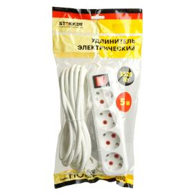 Удлинители STEKKER 49355, серия Home, цвет белый, длина 5 м, количество розеток 3, сталь, сечение кабеля 1 мм2, тип кабеля ПВС, материал кабеля -, ток 16А, напряжение 250В, максимальная нагрузка 3520Вт, тип вилки - прямая. Диапазон рабочих температур +1.