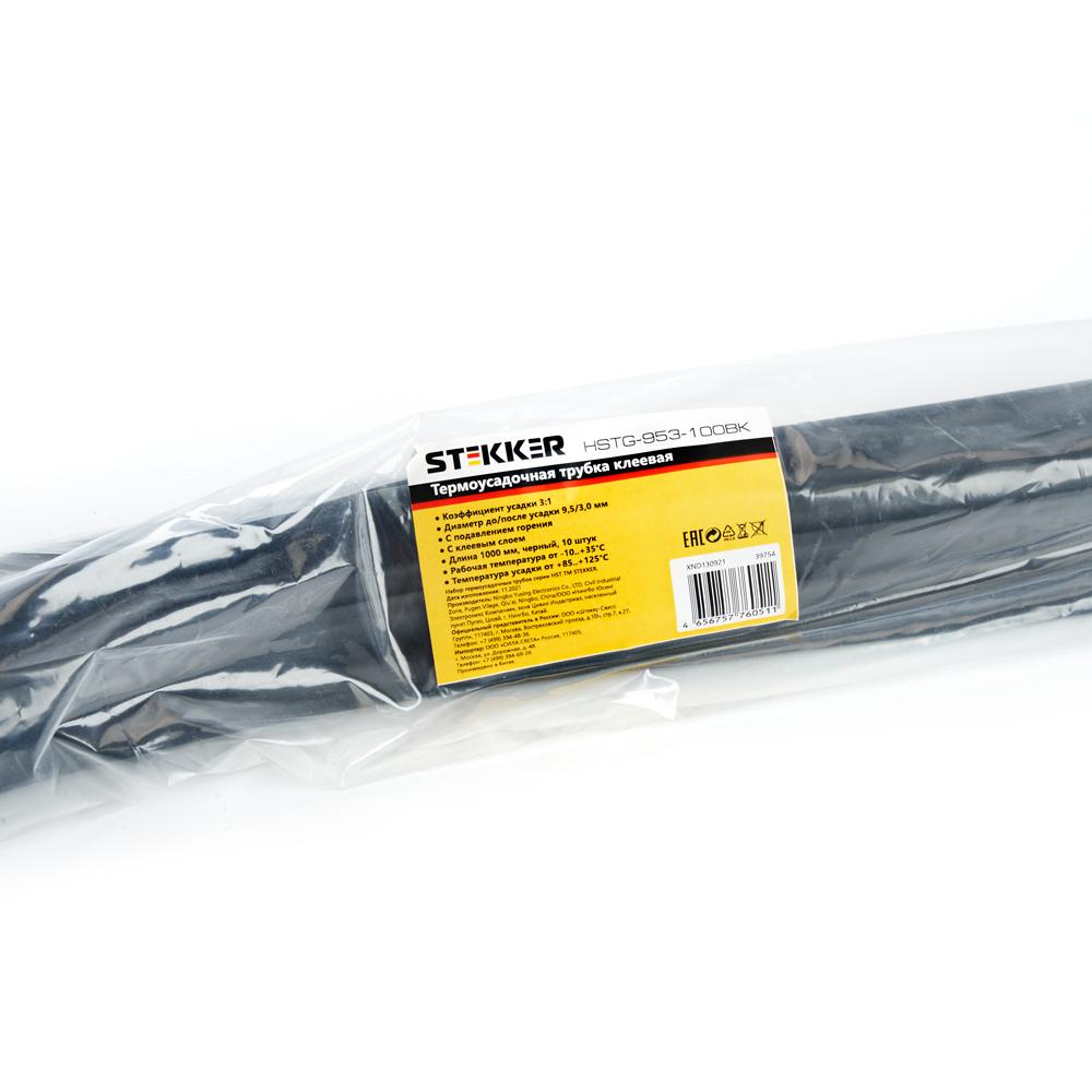 Термоусадочные трубки STEKKER HSTG-953-100BK, длина 1000мм. 10шт. в наборе, цвет: черный. Коэффициент усадки 3:1, диапазон рабочих температур -10..+35°C, температура усадки +85..+125°C, номинальный ток 32А, для проводов сечением мм2.