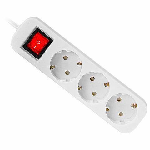 Удлинитель сетевой DEFENDER S330, 3 розетки, c заземлением, выключатель, 10А, длина 3 м, белый, 99234