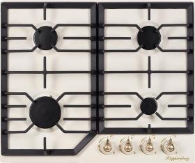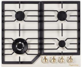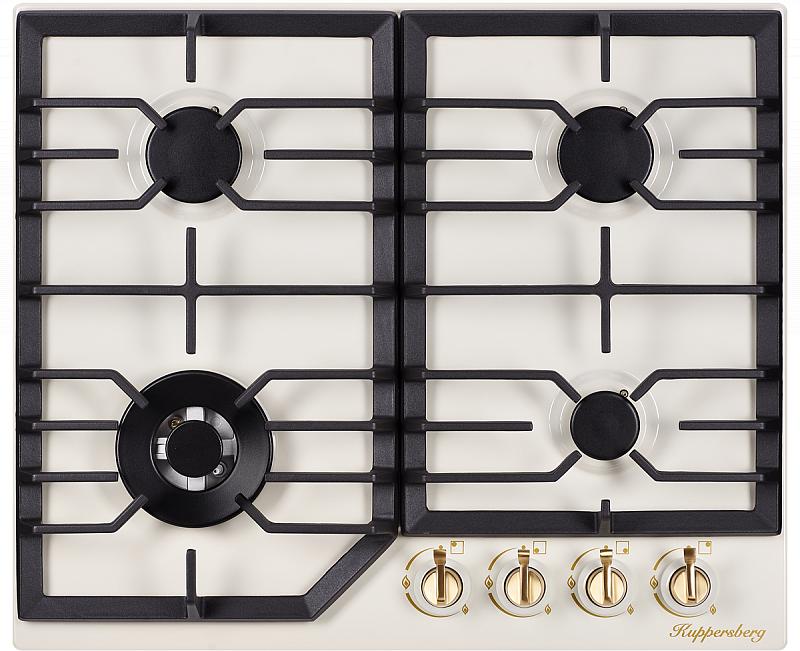 Встраиваемые газовые панели Kuppersberg / газ, классический стиль, ширина 60 см, 4 конфорки, электроподжиг,газ-контроль конфорок, чугунные решетки, цвет фурнитуры: бронза, цвет: бежевый.