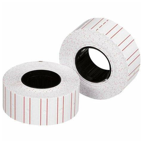 Этикет-лента 21х12 мм, прямоугольная, белая с красной полосой, КОМПЛЕКТ 10 рулонов по 1000 этикеток, 117546