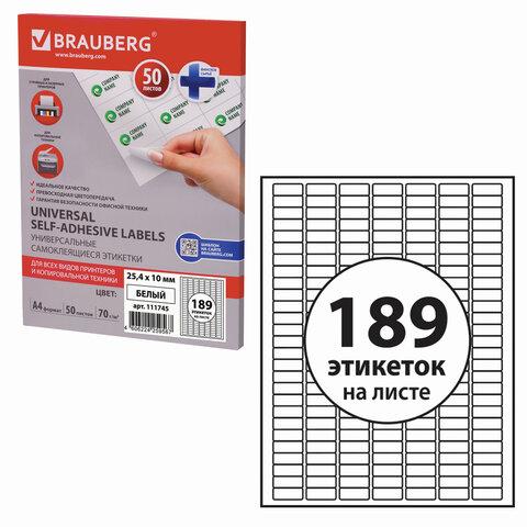 Этикетка самоклеящаяся 25,4х10 мм, 189 этикеток, белая, 70 г / м2, 50 листов, BRAUBERG, сырье Финляндия, 111745